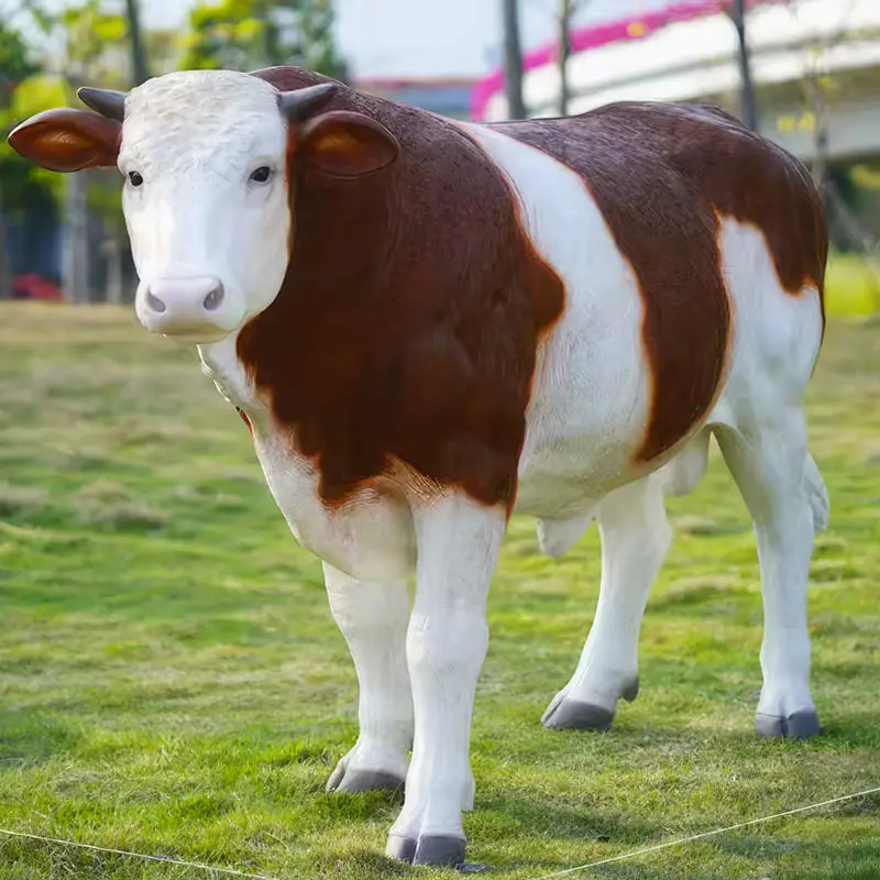 Sculpturile simulate de vacă folosesc pe scară largă materiale moderne, cum ar fi rășina, fibra de sticlă și oțelul inoxidabil. Aceste materiale nu numai că au avantajele rezistenței ridicate, rezistenței la coroziune și procesării ușoare, dar pot obține și efecte realiste de textură și culoare prin tehnologia de tratare a suprafețelor.