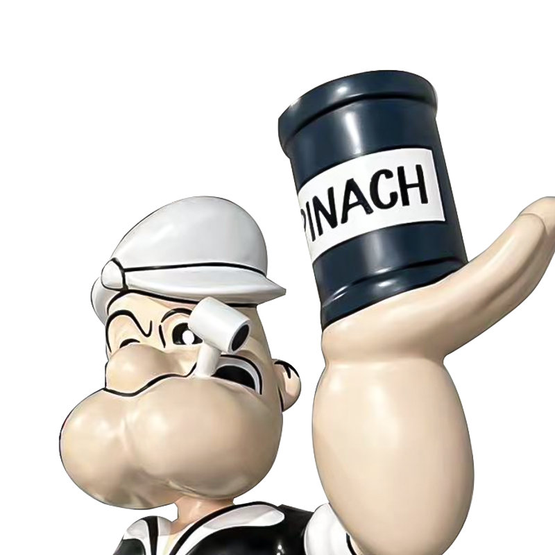 Compania noastră a personalizat o sculptură de desene animate Popeye, cu dimensiuni, culori și logo -uri adaptate la dimensiunea clientului.
