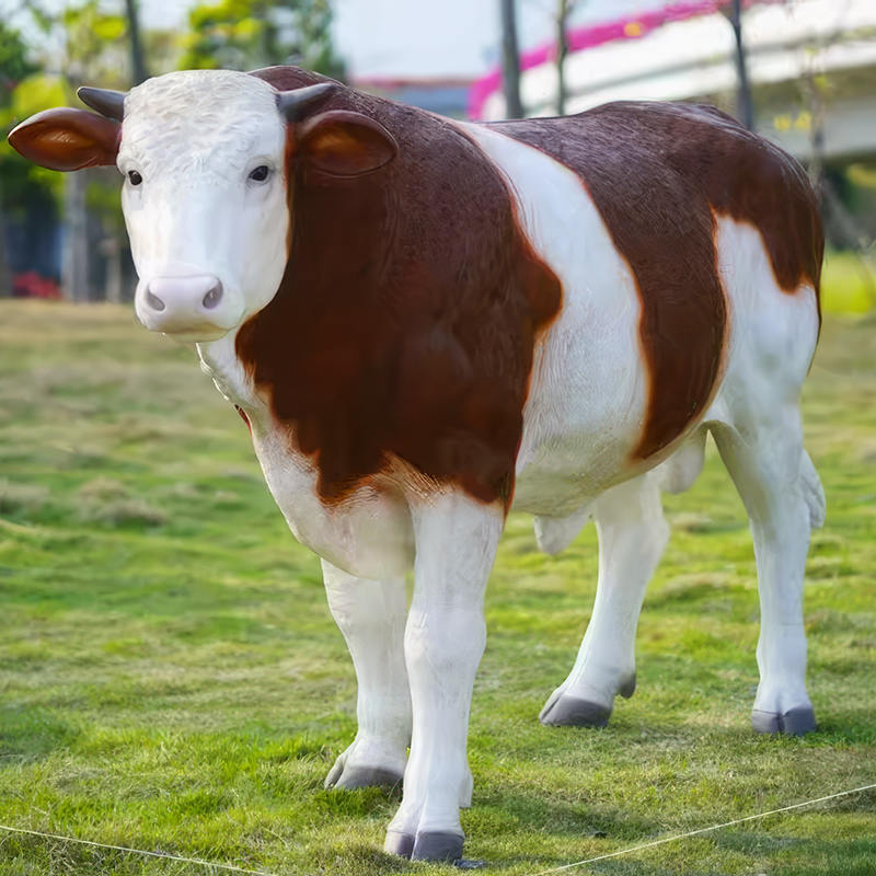 Statuie de vacă simulată, potrivită pentru diverse machete de peisaj exterior sau interior, cum ar fi grădini, mall -uri, ferme, etc. Este durabilă și nu se estompează ușor.